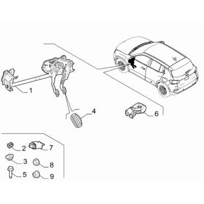 Jeep Avenger 2023-Present Foot Brake Control ScrewnnNumber: 5 in image, Image for Display only and item may vary depending on vehicle model.nnGenuine Jeep Part Number: 9684075180